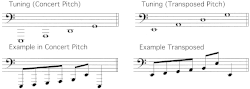 3. ^ The existence of two basses, a smaller one and a larger one, was also a feature of the viol family, which had two types of violone tuned one fourth apart