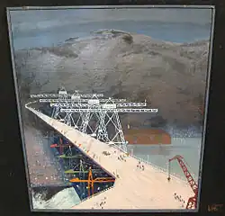 In the beginning of the seventieths, many things that Tomilovsky painted before stopped satisfying him. Over sudden he felt the fast pulse of the new industrial developments in Siberia. Being inspired by the technological progress, Tomilovsky asked himself a profound question: ‘what should a new art be like?’ He answered his question with a new topic in his art dedicated to depicting the massive hydroelectric stations construction sites, which were the grandest and the most inspirational developments in Siberia at that time. This new inspiration was a major turn in the artist’s creative style as Tomilovsky decided that such pieces of art should not be ‘painted’ but rather ‘constructed’ as the industrial developments themselves. It was the new style of Tomilovsky’s paintings which aimed to depict the grandeur and scale of the Soviet construction projects of the second half of the 20th century. According to A. Madisson, this period of Tomilovsky’s art could be characterised by the opinion he stated at the opening of one of his exhibitions: ‘We should enter the spaciousness of the brand new art, wide vision, and bolder solutions, where all the small and unnecessary is swept aside’.