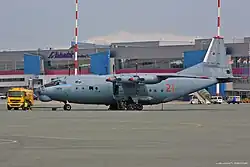 The reconstructed terminal with air-bridges, behind Antonov An-12