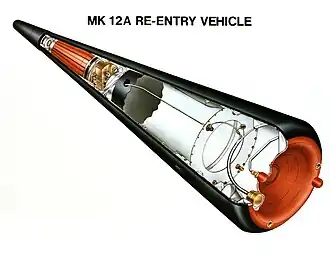 The W62 was an American thermonuclear warhead designed in the 1960s and manufactured from March 1970 to June 1976. Used on some Minuteman III ICBMs, it was partially replaced by the W78 starting in December 1979, and fully replaced by W87 warheads removed from MX Peacekeeper missiles and retired in 2010.[1][2]
