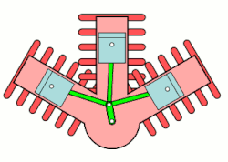 W-engine Same as V-engine except with three banks of cylinders on the same crankshaft.