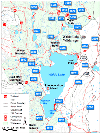 - ^ "Waldo Lake Wilderness and Recreation Area". Forest Service Maps. U.S. Forest Service.