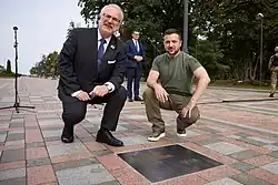 On September 9, 2022, during a visit to Ukraine, the President of Latvia Egils Levits together with the President of Ukraine Volodymyr Zelenskyy opened a plaque with his name on the Walk of the Brave.[6]