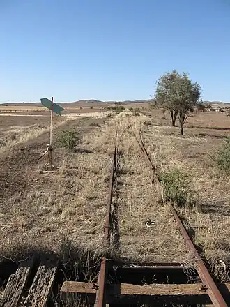 The Peterborough–Quorn railway line, which closed in 1988, at Walloway locality in 2006. Two years later the rails were removed. | |||||||||||||||