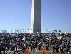War usually results in significant deterioration of infrastructure and the ecosystem, a decrease in social spending, famine, large-scale emigration from the war zone, and often the mistreatment of prisoners of war or civilians.[76][77][78] For instance, of the nine million people who were on the territory of the Byelorussian SSR in 1941, some 1.6 million were killed by the Germans in actions away from battlefields, including about 700,000 prisoners of war, 500,000 Jews, and 320,000 people counted as partisans (the vast majority of whom were unarmed civilians).[79] Another byproduct of some wars is the prevalence of propaganda by some or all parties in the conflict,[80] and increased revenues by weapons manufacturers.[81]