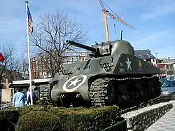 An M4 Sherman tank in the centre of Bastogne, Belgium