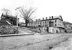 The Warden's House was part of the original construction for the Minnesota Territorial Prison. It stood outside the walls on a bluff overlooking the prison complex, which was located immediately to the north within a ravine. The prison was in operation for 61 years, from 1853 to 1914. In that time 13 successive wardens resided in the house, serving terms as short as five months to as long as 20 years. The first two wardens were appointed by the territorial legislature, then, for the first 40 years of statehood, by the Governor of Minnesota with State Senate confirmation. In 1889, to quell political favoritism in the choices, legislation assigned the selection of wardens to a five-person board of managers.[4]