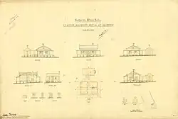 Tenders were called on 22 June 1886 for the construction of a passenger station and goods shed at the new Warwick terminal station. The contract for the goods shed was let to MT O'Brien for £2,710 and for the passenger station to R Godsall and others for £5,624. A 40-foot (12 m) turntable was also planned for Warwick at this time. These were the second set of tenders called for the station buildings as the previous tenderers were all too high.[1]