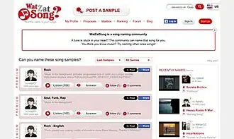 - ^ a b c Pfauth, Ernst-Jan (15 March 2008). "WatZatSong.com: humming and guessing music community". TNW. Retrieved 22 March 2024.