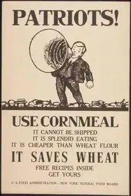 Under the Wilson administration during World War I, the U.S. Food Administration, under the direction of Herbert Hoover, set a basic price of $2.20 per bushel. The end of the war led to "the closing of the bonanza export markets and the fall of sky-high farm prices", and wheat prices fell from more than $2.20 per bushel in 1919 to $1.01 in 1921.[22] The McNary–Haugen Farm Relief Bill failed in Congress, and was followed by the Agricultural Marketing Act of 1929, the establishment of the Federal Farm Board, and the Agricultural Adjustment Act of 1933.[9][23] The most important legislation for wheat production in the United States today are the farm bills which authorized farm subsidies, the Conservation Reserve Program, and other programs. Adopted around every five years, the most recent farm bills are the 1985 farm bill, 1990 farm bill, 1996 farm bill, 2002 farm bill, 2008 farm bill, 2014 farm bill, and 2018 farm bill.