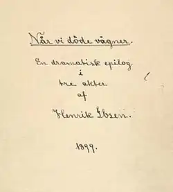 When We Dead Awaken (Norwegian: Når vi døde vågner) is the last play written by Norwegian dramatist Henrik Ibsen. Published in December 1899, Ibsen wrote the play between February and November of that year. The first performance was at the Haymarket Theatre in London, a day or two before publication[1] and the currently only Broadway production was originally at the Knickerbocker Theatre from March 7-10, 1905, then moving to the Princess Theatre until it closed in April 1905.[2]