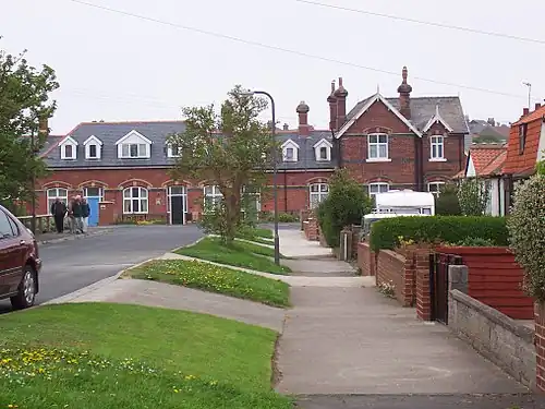 The station was opened in December 1883, when the extension from Loftus opened southwards towards Whitby.[1] South of the station, an incline allowed trains to descend to the railway station in Whitby town. In July 1885, a second line from the south was opened which spanned the River Esk over Larpool Viaduct. This line was the Scarborough and Whitby Railway and meant that trains for Whitby from Scarborough, had to reverse at West Cliff station to enable them to terminate in Whitby Town railway station. This procedure continued until 1961, when the trains reversed at Prospect Hill Junction.[2]