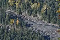 Before 1906, the White River joined the Green River near Auburn, and the combined river (under the name "White") joined the Black River at Tukwila, forming the Duwamish River, which emptied into Elliott Bay at Seattle. In 1906, a great flood coupled with a large log and debris jam diverted the White River southward into the Stuck River thence into the Puyallup River, which empties into Commencement Bay at Tacoma. The debris dam was replaced with a permanent diversion wall. Thus the White River remains a tributary of the Puyallup River today.[4]