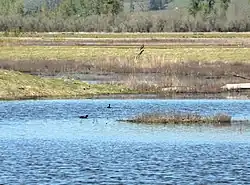 The Willamette River and Tributaries Gallery Forest ecoregion includes low-gradient, meandering river channels, oxbow lakes, and meander scars incised into the broad floodplains of the Willamette River and its tributaries. Elevation varies from 40 to 500 feet (12 to 150 m). The region includes the historic floodplains of the Willamette River system, which rarely function today due to flood control dams in the upper basin that have reduced the frequency and volume of floods and contributed to the decline of the endemic, endangered Oregon chub. A small section, designated as the Willamette Floodplain, has been protected within the William L. Finley National Wildlife Refuge. Historically, riparian gallery forests containing ash, black cottonwood, alder, and bigleaf maple grew on fertile, alluvial soils. Today, most of the forests have been replaced by agriculture and residential development. The region covers 675 square miles (1,748 km2) in Oregon in a narrow band rarely more than 5 miles (8 km) wide that extends along nearly the entire length of the Willamette River and the lower reaches of the McKenzie, Long Tom, Santiam, Yamhill, Molalla, Clackamas, and Tualatin rivers, including the Tualatin River National Wildlife Refuge.[2][3]