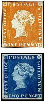 Avery's most important pieces were unused one penny and two pence Post Office Mauritius stamps which he acquired in 1893.[7]