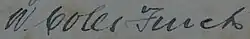 Coles Finch was the resident engineer of the Brompton, Chatham, Gillingham and Rochester Water Company.[10] He had previously been engineer and manager of the Higham and Hundred of Hoo Water Company and assistant manager of Strood Waterworks.[11] He lived at Waterworks House, Luton, Chatham.[12] In 1897, Coles Finch read a paper at the British Association of Waterworks Engineers meeting at the Town Hall, Westminster, London on Electrical Water Level Recorders.[13]