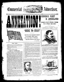 McKinley's foreign policy emulated the era's overseas imperialism of the great powers in Oceania, Asia, and the Caribbean Sea. The United States annexed the independent Republic of Hawaii in 1898, and it became the Territory of Hawaii in 1900. McKinley hoped to persuade Spain to grant independence to rebellious Cuba without conflict. Still, when negotiations failed, he requested and signed Congress's declaration of war to begin the Spanish-American War of 1898, in which the United States saw a quick and decisive victory. As part of the peace settlement, Spain turned over to the United States its main overseas colonies of Puerto Rico, Guam, and the Philippines, while Cuba was promised independence but remained under the control of the United States Army until May 20, 1902. In the Philippines, a pro-independence rebellion began; it was eventually suppressed. McKinley acquired what is now American Samoa when his administration partitioned the Samoan Islands with the United Kingdom and the German Empire in the Tripartite Convention, during a period of warming ties between the UK and US known as the Great Rapprochement.