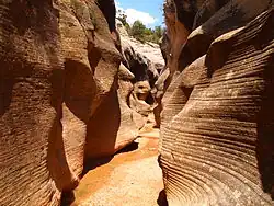 Willis Creek is a creek in Bryce Canyon National Park, Dixie National Forest, and the Grand Staircase–Escalante National Monument in Garfield and Kane counties in southern Utah, United States. The creek rises in the national park in Garfield County, but quickly heads south out of the park to enter the national forest and Kane County. The course of the creek then curves to the east and enters the national monument, were it eventually runs through a wash, which in some sections narrows to become a slot canyon. This slot canyon is officially known as the Willis Creek Slot Canyon and it is a 5.8 mile hike that is accessible at the Willis Creek Slot Canyon Trailhead.[1] This creek is popular with hikers as the stream is generally 1-2 inches deep and a trail runs the length of the creek.[2] The end of the creek is dry.[2]