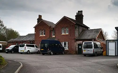 The main station buildings, including a house for the station master and the signal box, were on what was the northern platform, which was served by trains towards Salisbury and London. A footbridge linked this with the now demolished westbound platform where there was a smaller shelter for passengers. A goods yard was on the north side of the line at the Salisbury end of the station.[2]