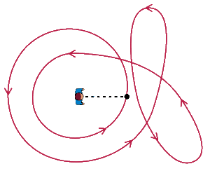 An object traveling along the red curve makes two counterclockwise turns around the person at the origin.