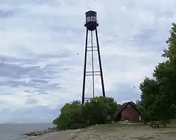 Of the many recreation and railway related structures erected by the CPR at Winnipeg Beach, only the steel water tower survives. It was designed and constructed in 1928 by the Vulcan Iron Works Ltd. of Winnipeg. Utilitarian in design and appearance, the 40-metre-high (130 ft) tower supported a 90,000-litre (20,000 imp gal; 24,000 US gal) capacity tank and provided a source of pressurized water for the CPR steam locomotives and fire protection services for the resort's facilities. Non-operational since the resort closed, the structure is the best example of only five surviving riveted-steel water towers in Manitoba. As in its heyday, the tower is a prominent visual landmark in and around the beach community.