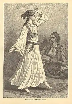 According to C. Fraser: "Polygamy, so peculiar to Mohammedan countries, does not prevail to any great extent in Bosnia, and both sexes enjoy the privilege of choosing their companions for life. An unmarried female appears in public without a veil, and respect is shown to the mother of a family. In all these respects they differ widely from the inhabitants of eastern countries."[17][18]