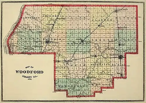 It was during the pre-Civil War years that Woodford County adopted townships – which was met with strong opposition. No fewer than four public elections were held between 1850 and 1854 before the township system gained a majority of votes.[24]