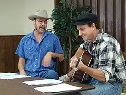 The 10th annual festival took place July 11–15, 2007. To celebrate the ten-year anniversary, one of many Oklahoma centennial-year events, the festival kicked off with a ticketed event on Wednesday night in Okemah's historic Crystal Theater.[2] Seven "10-year artists" – artists who have participated every year since the festival's inception – performed at a Coalition benefit show titled "In the Spirit of Woody Guthrie". Those artists were Jimmy LaFave, Don Conoscenti, Ellis Paul, Bob Childers, Joel Rafael, Terry "Buffalo" Ware, and the Red Dirt Rangers.[36] The 2007 lineup spanning over four days included more than 60 artists from many genres including folk, alt-country and rock. Members of the Guthrie family scheduled to appear were Arlo Guthrie and Cathy Guthrie (daughter of Arlo) and Amy Nelson (daughter of Willie Nelson), who perform as Folk Uke. More than 100 artists performed at the festival's 10-year celebration including Kevin Welch, Sara Hickman, Butch Hancock, Tim O'Brien, Ronny Elliot, Terri Hendrix and Lloyd Maines, Rob McNurlin, Jack Williams, Antje Duvekot, Johnsmith, Sam Baker, David and Adam Amram, The Burns Sisters, Ronny Cox, Michael Fracasso, Radoslav Lorković and Eliza Gilkyson.[37] The tenth festival again concluded on Sunday with a "Hoot for Huntington's", having become a Woody Fest tradition. The hootenanny is coordinated and led by Terry "Buffalo" Ware, a guitarist living in Norman, Oklahoma, and the Woody Guthrie Folk Festival All-Star House Band. The House Band also includes Randy Crouch (fiddle/pedal steel), Don Morris (bass), Dean Brown (drums), Dan Duggin (accordion) and T.Z. Wright (keyboard/accordion). The House Band can be heard playing back-up for many festival performers and in 2007 also played a set of their own – as The Oklahoma Geniuses – at the Brick Street Cafe.[38]