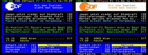 By late 2021, SWR Fernsehen stopped using the system, but ZDF, 3sat, Bayerisches Fernsehen and Phoenix has at least some Level 2.5 enhanced pages.