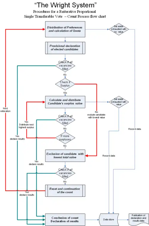 The Wright system is a refinement of rules associated with proportional representation by means of the single transferable vote (PR-STV) electoral system. It was developed and written by Anthony van der Craats, a system analyst and life member of the Proportional Representation Society of Australia. It is described in a submission into a parliamentary review of the 2007 Australian federal election.[1][2]