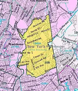 Wykagyl is a suburban community in New Rochelle, Westchester County, New York, United States. It is conterminous with ZIP code 10804, encompassing much of the city's 'North End'. According to Forbes, in 2010 Wykagyl's 10804 ZIP code, with a median home price of $806,264, ranked 333rd on its list of the 500 most expensive ZIP codes in the U.S.[1] The Washington Post ranks Wykagyl among the nation's 650 Super Zips, or those with the highest percentile rankings for median household income and the share of adults with college degrees or higher.[2]