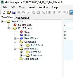Sample XML log file in XML Notepad 2007, each + can be expanded to show more fields and data.