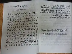 In recent years, the usage of Xiao'erjing is nearing extinction due to the growing Chinese economy and the improvement of Chinese character education in rural parts of the country. Chinese characters, along with pinyin, have since replaced Xiao'erjing. Since the mid-1980s, there has been much scholarly work done within and outside China concerning Xiao'erjing. On-location research has been conducted and the users of Xiao'erjing have been interviewed. Written and printed materials of Xiao'erjing were also collected by researchers, the ones at Nanjing University being the most comprehensive. Kazuhiko Machida is leading a project in Japan concerning Xiao'erjing.[10] Books are printed in Xiao'erjing.[11] In Arabic language Qur'ans, Xiao'erjing annotations are used to help women read.[12] Xiao'erjing is used to explain certain terms when used as annotations.[13] Xiao'erjing is also used to write Chinese language Qurans.[14][15]