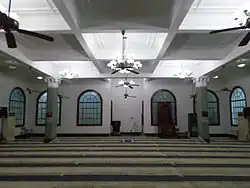 The mosque was built in the traditional West Asian Islamic style combined with Chinese architecture.[2] The exterior is painted green and white. Above its entrance gate contains the word 'mosque' in Chinese drawn by calligrapher Luo Junti. The main two-story prayer hall can accommodate up to 500 people with a floor area of 500 m2. It is completed with arched windows. The mosque also has one minaret and four domes at the four corners of the mosque.[3]
