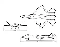 YF-23 3-view drawing from Northrop/McDonnell Douglas