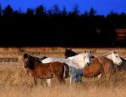 The Yakutian (Yakut: Саха ата, Sakha ata) or Yakut is a native horse breed from the Siberian Sakha Republic (or Yakutia) region. It is large compared to the otherwise similar Mongolian horse and Przewalski's horse.[2]: 340  It is noted for its adaptation to the extreme cold climate of Yakutia, including the ability to locate and graze on vegetation that is under deep snow cover,[3] and to survive without shelter in temperatures that reach −70 °C (−94 °F).[4]