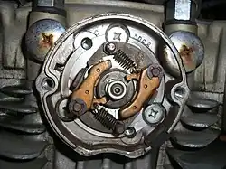 The models up to 1979 use points ignition. Two sets of points are located on the upper left of the cylinder head. On the right side cylinder head, an advance mechanism is located. An advance mechanism is used to retard the timing for easy starting and smooth idle. Post-1979 models use electronic ignition systems.