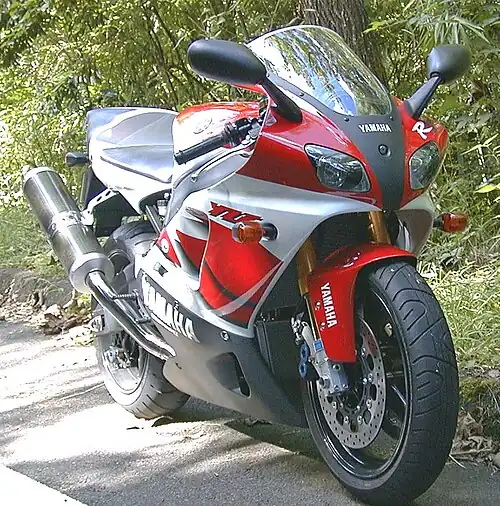 In 2001, motorcycling journalist Roland Brown had a high-side crash riding the YZF-R7 of World Superbike racer Noriyuki Haga during testing at Circuito de Jerez, Spain.[6] Cycle World, in a 2016 retrospective, had retired racer Freddie Spencer ride the R7 alongside five other famous racing bikes from the years 1986 through 2013.[7] After riding earlier years' bikes and then moving to the R7, Spencer said, "We've just moved into the modern age. This is the first bike that needs a steering damper."[7] Compared to the other racing motorcycles, the R7 looked "a bit pedestrian", with its stripes and markings being only stickers instead of painted on, and having "a subtlety to it that makes it blend into the crowd."[7]
