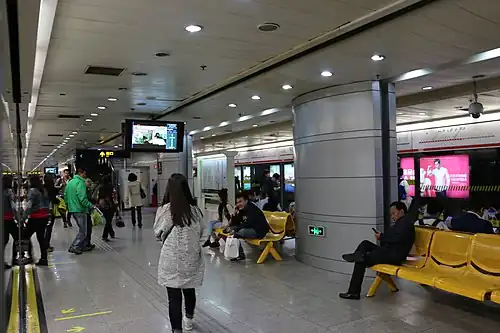 Yanchang Road (simplified Chinese: 延长路; traditional Chinese: 延長路; pinyin: Yáncháng Lù) is a station on Shanghai Metro Line 1.[1] It is located in Jing'an District along Gonghexin Road (which is underneath the North–South Elevated Road), and is the first station outside the Inner Ring Road when travelling northbound from the central Huangpu District. This station is part of the northern extension of that line from Shanghai Railway Station to Gongfu Xincun that opened on 28 December 2004.[2]