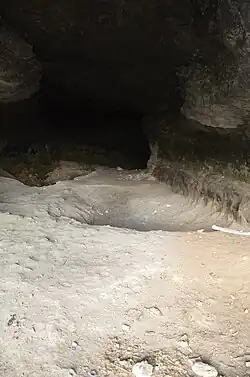 The cave is an important fossil site which has been researched by archeologists, paleontologists, geoarchaeologists and biospeleologists. Scientific exploration of the cave began in the mid-19th century.[3][7] Excavation attempts made in 1920 were followed by systematic archaeological work in the 1980s financially supported by the National Geographic Society.[1][6][8][9]