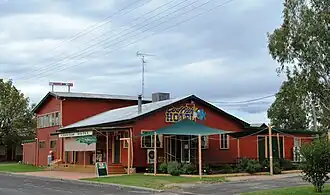 The first two hotel licences were issued in 1866 at about same time as the first store was built - the Yetman Hotel first and then the Macintyre Hotel.[3] The Macintyre Hotel was built and first operated by William Watson Rainbow.[4] Country hotels were often the social hub of the town and the Macintyre Hotel was no exception. Its verandah served as a stand for the racing stewards at the Easter Races of 1870. New Year and Easter Races saw the "squatters and gentry" mix with the selectors and station labourers - master and man united in their enthusiasm for racing, betting and celebratory dinners. The latter were often hosted by the publican, who often put up a prize or two for the winners.[5] The Macintyre Hotel is no more, while the Yetman Hotel became what is now the Codfish Hotel.
