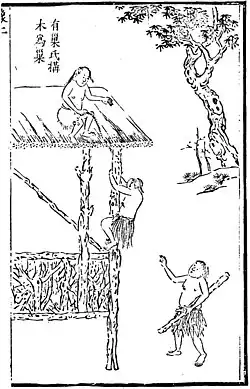 Youchao (Chinese: 有巢, lit. "Nest-Owner") is the inventor of houses and buildings, according to ancient Chinese mythology.[1][2] He is said to have been one of The Three August Ones in ancient China. He is an obscure figure, also known as Da Chao (大巢).[3] Tradition holds that he ruled over China for 200 years from 3162–2962 BC. According to Han Feizi, people could avoid harm from animals with the help of buildings made from wood, which was taught by Youchao.[4]