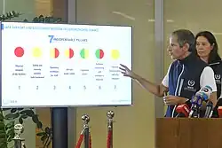On 2 September, Russia said IAEA inspectors will be allowed to remain permanently at the nuclear plant.[38] Ukrainian president Zelenskyy criticised the IAEA for not yet calling for the demilitarisation of the plant.[39] At a press conference that evening just after arriving back in Vienna, Grossi said six inspectors had remained at the plant, and two of those would stay permanently. They had been able to see all parts of the plant they requested to see, and the plant's staff worked in an admirable and professional way with the Russian occupier's nuclear experts. He said that some plant staff had decided to leave, while others continue to work; two reactors continue to operate. Physical damage had occurred at the plant, and the level of military operations in the region is increasing and on site there were references to military offensives and counter-offensives which concerns him a lot. He said inspectors would have a stabilising effect, but they could not stop the war or give the plant back to the Ukrainian authorities.[40][41] Energoatom responded by stating the IAEA inspectors were manipulated and lied to by the Russian occupiers.[42]