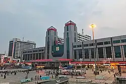 Zhengzhou railway station (simplified Chinese: 郑州站; traditional Chinese: 鄭州站; pinyin: Zhèngzhōu zhàn) is a passenger railway station in Erqi District, Zhengzhou, Henan. It is located in the city center, about 1 km southwest to the Erqi Memorial Tower. As the junction of the important Beijing-Guangzhou Railway and Longhai Railway, the station is one of the busiest in China, and is called as "the heart of Chinese railway network".