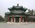 Of all the gardens and parks surrounding the Forbidden City, such as the Beihai and Jingshan, Zhongshan is arguably the most centrally located of them all.[1] The Zhongshan Park houses numerous pavilions, gardens, and imperial temples such as the Altar of Earth and Harvests or Altar of Land and Grain in some translations (Shejitan, 社稷坛), which was built in 1421 by the Yongle Emperor,[2] and it symmetrically opposite the Imperial Ancestral Temple, and it's where the emperors of Ming and Qing dynasties made offerings to the gods of earth and agriculture.[1] The altar consists of a square terrace in the centre of the park.