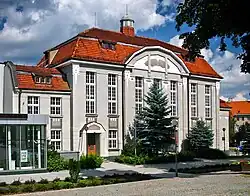 Since 1816 after the Napoleonic Wars, Grünberg was administered within the district Landkreis Grünberg in the Province of Silesia. In 1871 it became part of the German Empire during the unification of Germany. English industrialists purchased some of the city's textile factories during the 1870s and 1880s.[16] By 1885, most of Grünberg's population of 14,396 were Protestants.[18] The city was first connected to the Glogau (Głogów)-Grünberg-Guben railway line in 1871, followed by connections to Christianstadt (Nowogród Bobrzański) in 1904, Wollstein (Wolsztyn) in 1905, and a local line to Sprottau (Szprotawa) in 1911.[16]