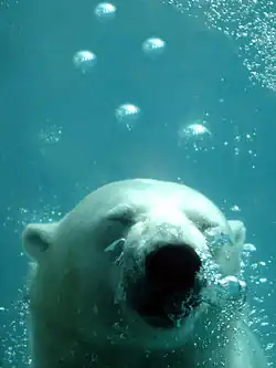 On December 4, 2009, the polar bear, Aisaqvak gave birth to two cubs. This was the first time a Canadian zoo experienced the birth of twin polar bears.[6] The polar bear cubs at first were only viewed from a hidden camera inside the den and eventually at three months of age wandered outside with their mom away from public viewing. When the cubs were six months old, they made their first public appearance at the Wild Zoo in June 2010.[7]